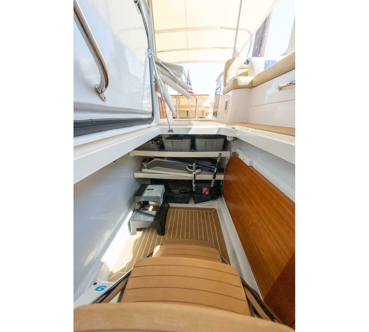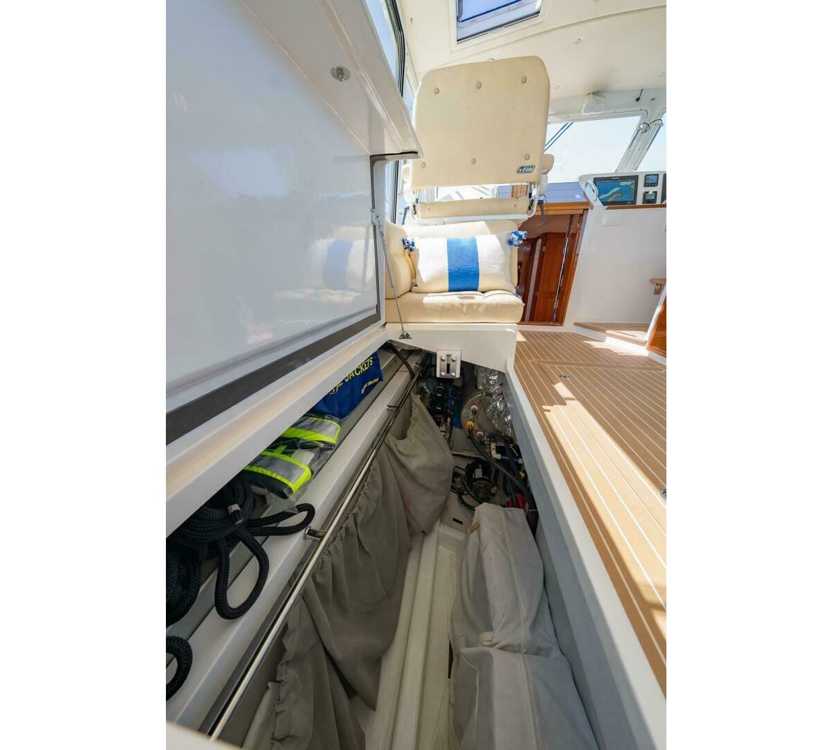LOLA is a one-owner 2018 MJM 50z with low hours, designed by Doug Zurn and built by Boston Boat Works. Powered by triple Volvo IPS 600s, she cruises whisper-quiet at 35 knots, tops out at 40, and is equipped with Seakeeper gyro, Humphree tabs, and Raymarine electronics. Her bright interior features a forward stateroom, a convertible guest cabin, dual heads with enclosed showers, and custom touches, including Bimini-integrated sunshades and kayak racks. Immaculately maintained, she shows like new and is turnkey for her next adventure.