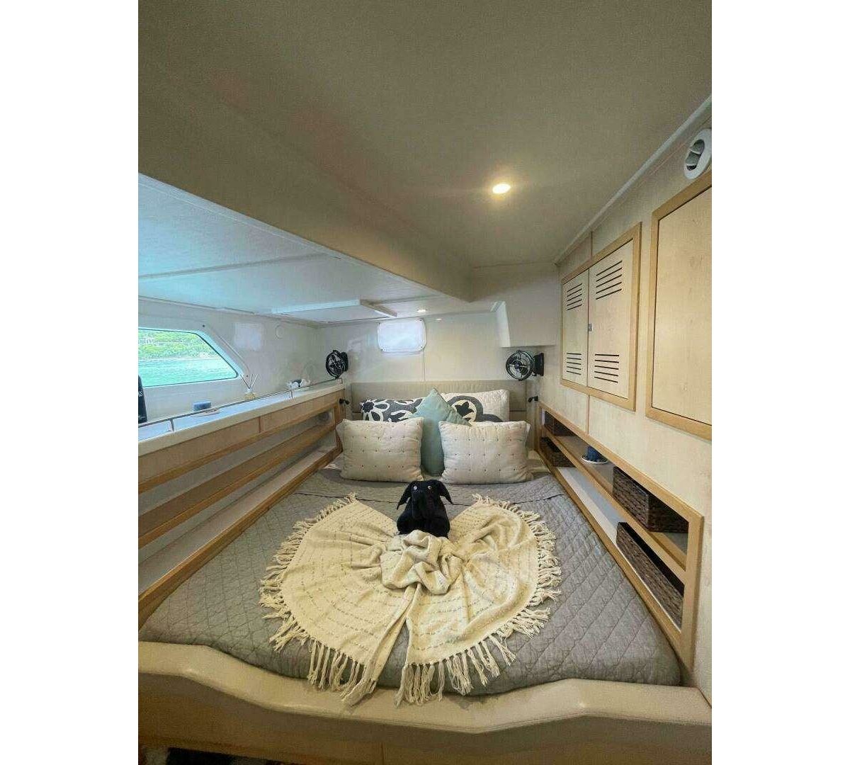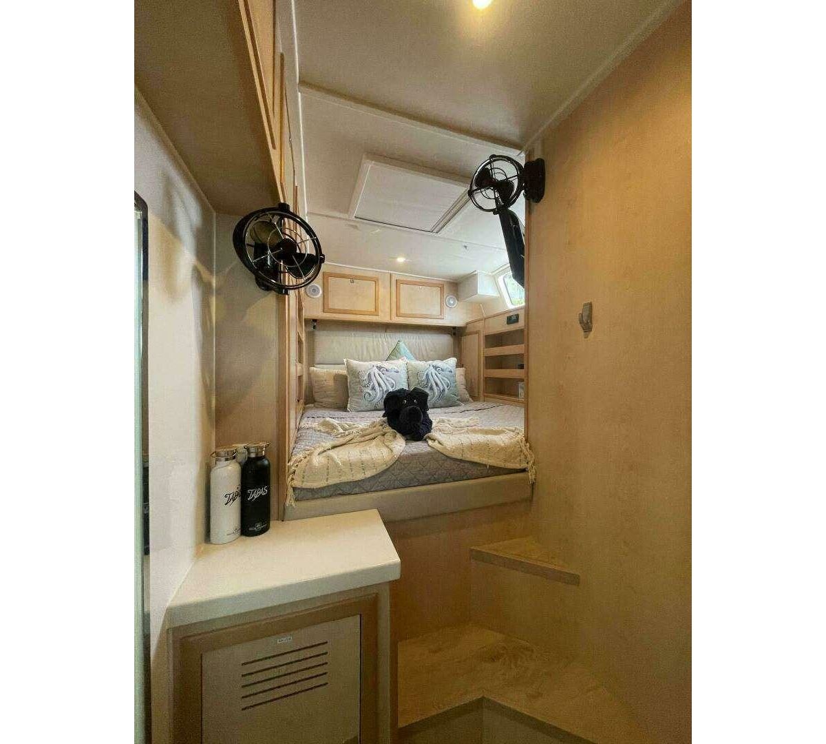 Rare five queen cabins layout, each with en-suite facilities, crew quarters with three single bunks