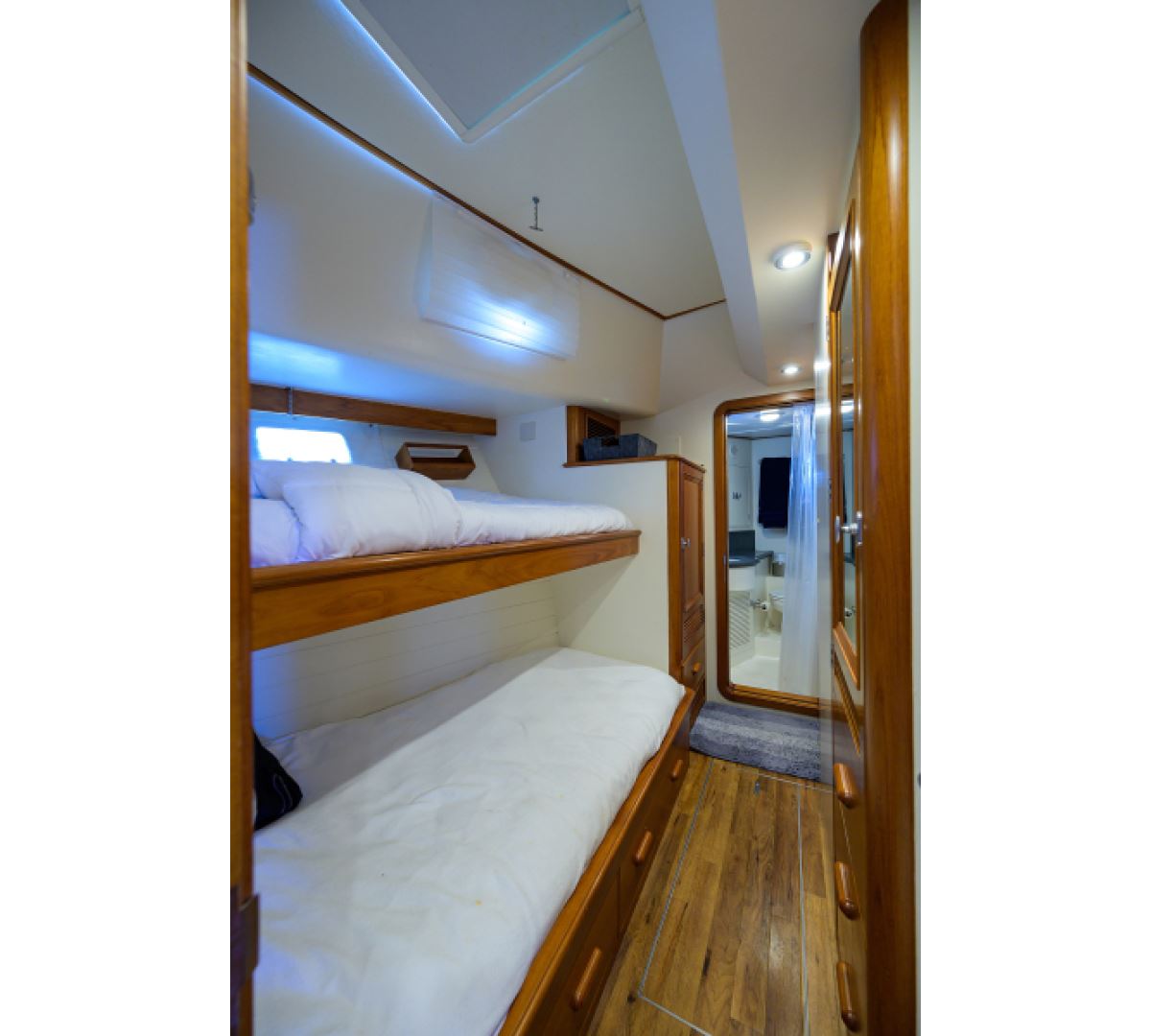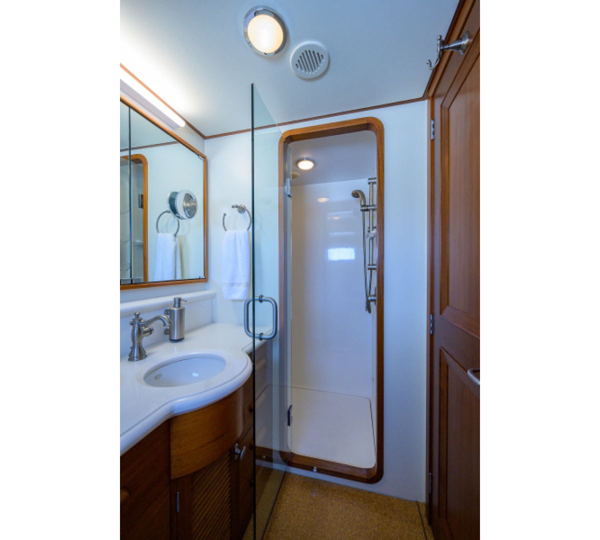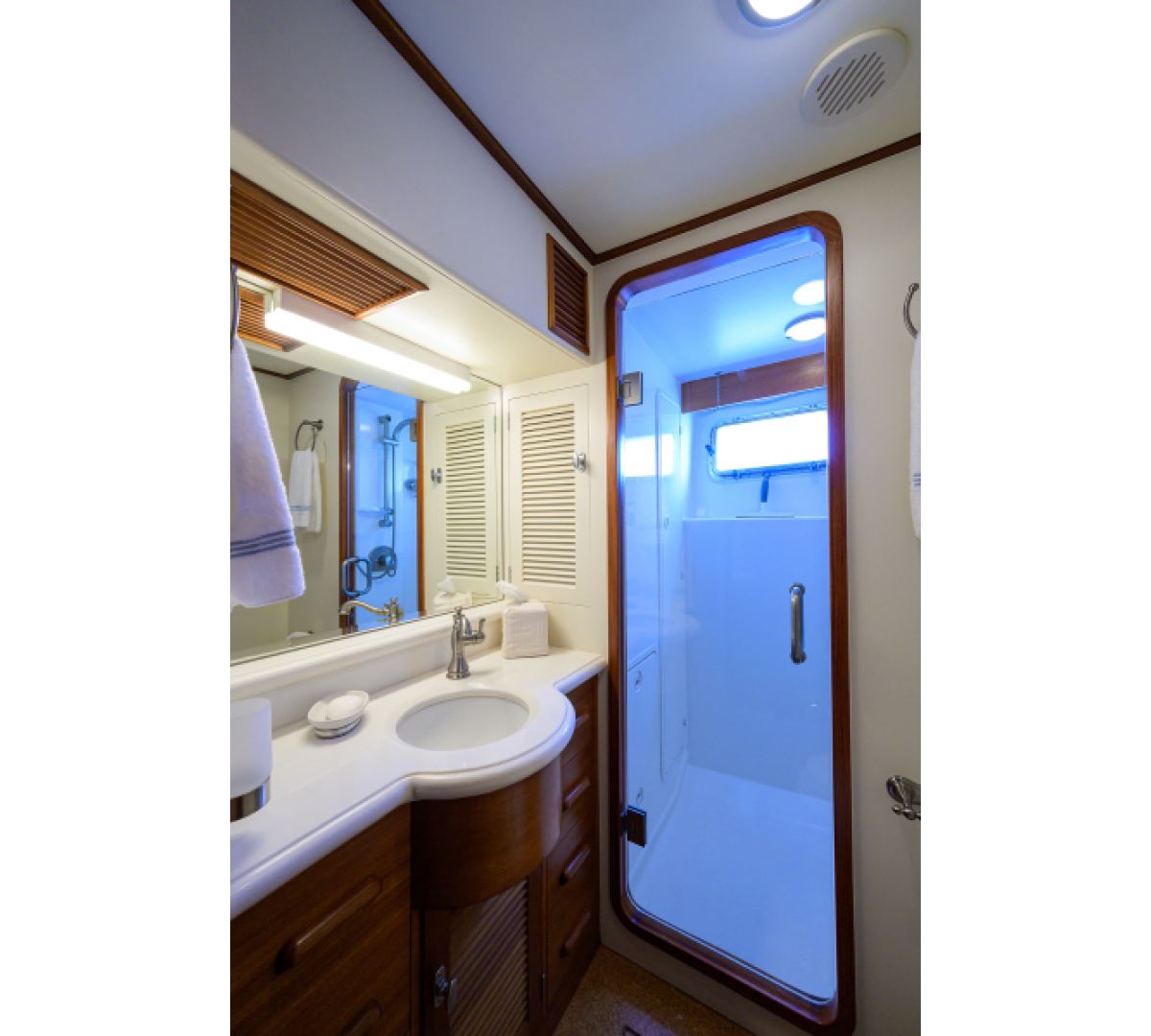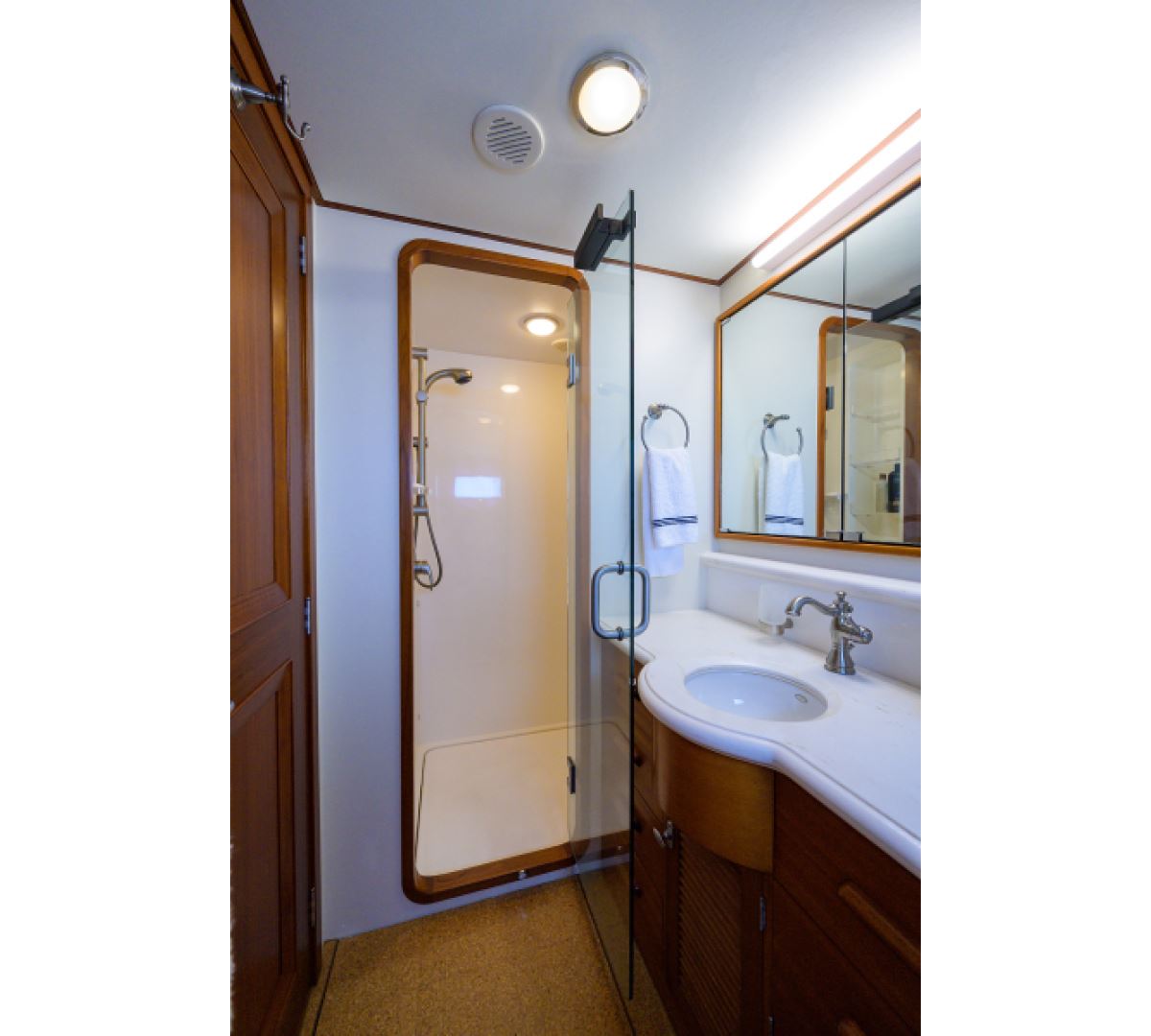SEA BOLD, a custom-built motor yacht reminiscent of C. Raymond Hunt's classic designs was crafted in 2003 by New England Boatworks in Rhode Island. This unique vessel boasts a timeless elegance paired with high functionality, perfect for yachting enthusiasts seeking luxury and performance. Constructed with Kevlar and Carbon Fiber composite, SEA BOLD offers exceptional strength and seakeeping abilities with a deep vee hull design. Following a refit in 2019-2020, she remains in immaculate condition under the care of a dedicated captain/engineer and steward. With a fast-cruising speed of 22 knots and top speed of 25 knots, SEA BOLD offers both efficiency and performance for an enjoyable cruising experience.